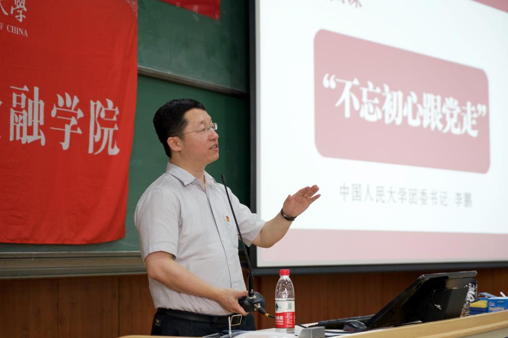 李鹏书记为学员们讲授“不忘初心跟党走”主题团课。李鹏书记介绍了共青团的发展历程和时代意义,引用习近平总书记在中国政法大学的相关讲话,阐述“党员团员年龄不同都是先锋队”、“革命战争年代,入党就是入团”、“党员团员上”等观点,讲述共产党和共青团在建立时期的紧密联系和相互扶持。谈到共青团的发展,李鹏书记梳理了共青团历次代表大会的主题和该时期的主要成就,使学员进一步了解了中国共产党与中国共产主义青年团的光辉历程。谈到现代青年对于社会的奉献,李鹏书记表达了对90后青年的殷切期盼,指出共青团是中国共产党领导的先进青年的群众组织,是广大青年在实践中学习中国特色社会主义和共产主义的学校,是党的助手和后备军。
