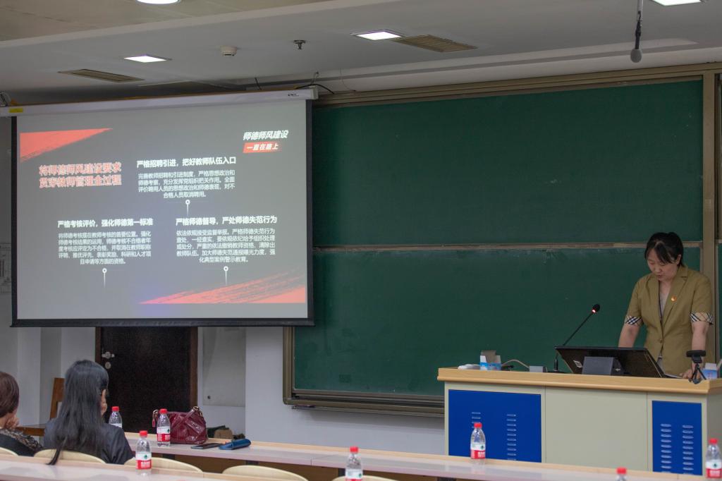 党委书记孙华玲首先介绍了师德师风专题教育工作的背景。经第十三届全国人大常委会第二十八次会议审议,《中华人民共和国教育法》第五条修改为“教育必须为社会主义现代化建设服务、为人民服务,必须与生产劳动和社会实践相结合,培养德智体美劳全面发展的社会主义建设者和接班人”,将党的教育方针落实为国家法律规范。她提到,为全面贯彻习近平总书记关于教育的重要论述和全国教育大会精神,深入落实《中共中央国务院关于全面深化新时代教师队伍建设改革的意见》,推进实施教育部等七部门《关于加强和改进新时代师德师风建设的意见》,色情动漫积极组织开展师德师风专题教育活动。