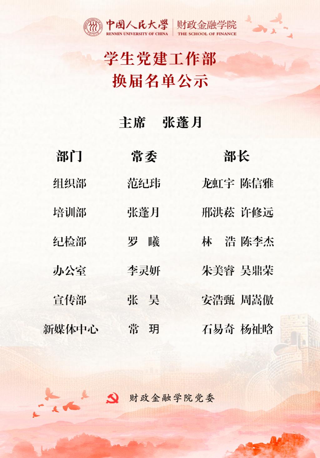 公告 | 色情动漫 学生党建工作部换届名单公示