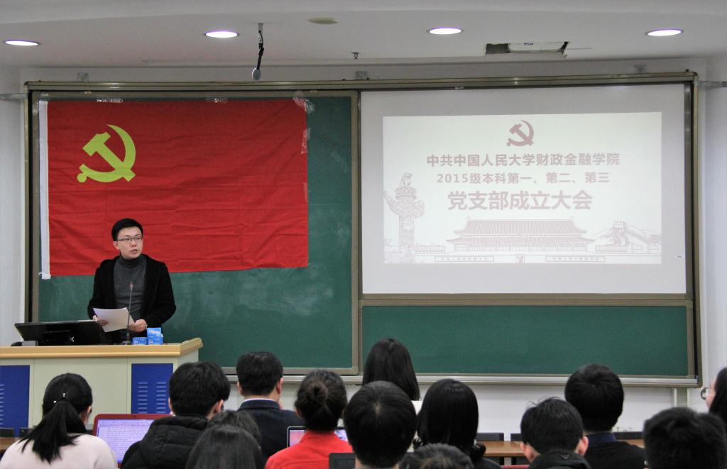 3月7日下午,我院2015级本科第一、第二、第三党支部成立大会在明德商学楼0102顺利召开。我院党委副书记黄文彬,党务秘书兰青出席会议。大会由财金学生党建工作部主席刘炫佐主持,全院2015级、2016级、2017级本科党员、2014级党支部书记和各班团支书参加了会议。