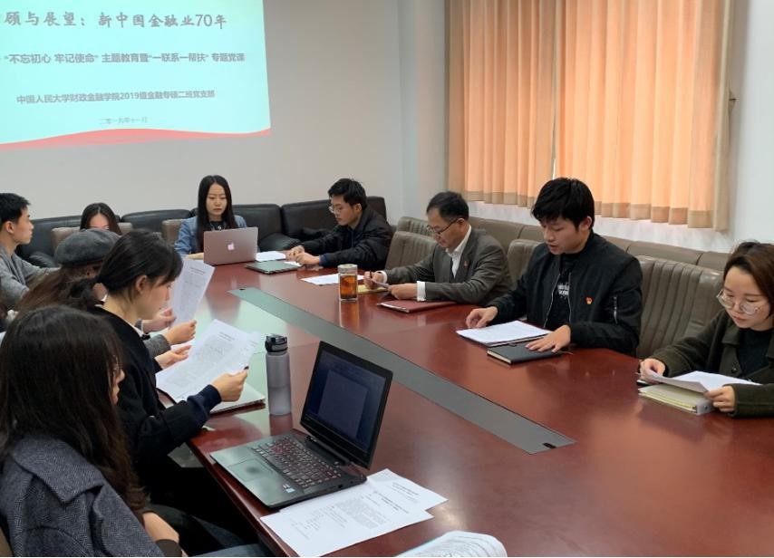 随后,结合学科专业,赵锡军教授带领同学们回顾了新中国成立70年金融事业的发展。2019级金融专硕二班党支部书记李昂、纪律委员赵天浩、正式党员张钰梓、张毓、朱傲然、朱凯悦等同志分别围绕金融机构、金融市场、金融监管、金融开放等话题回顾了新中国70年金融业的变迁,分享了对我国金融业发展的现状和未来的思考,到场的积极分子也从不同角度谈了自己的感受与体会。