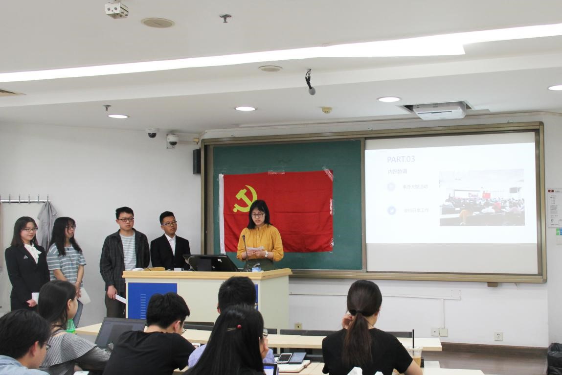 宣传部、培训部、办公室、纪检部、组织部和新媒体中心干事依次对本部门日常工作及部门成员进行介绍。