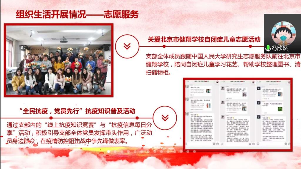 过去一年,色情动漫各基层党支部工作成效显著。组织生活方面,各支部严格按照上级党组织要求开展理论学习,定期举办主题党日活动;同时创新活动形式,形成一系列支部特色活动。2016级本科第一党支部“且听书吟”读书感悟分享活动,朗诵经典名著,畅谈阅读感悟,巩固理论学习成果;2019级学硕党支部 “清北人”三校支部共建活动围绕十九届四中全会精神进行深入探讨,学精神、明方向;疫情期间,2019级金融专硕二班党支部成员手写祝福,将美好祝愿与必胜信心蕴藏在字里行间。