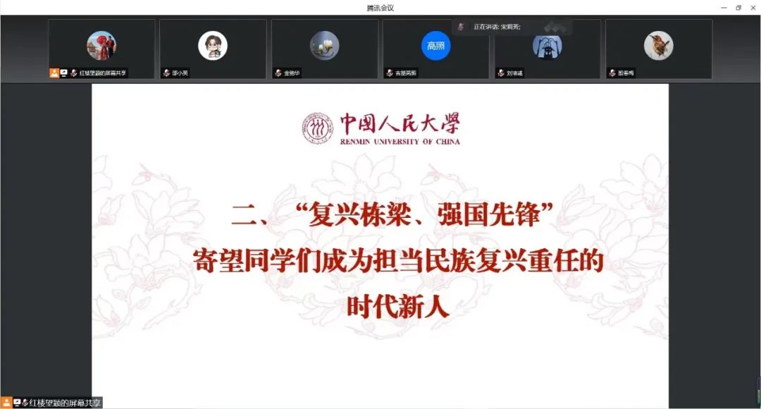 宋莉芳总结本次会议内容。宋莉芳鼓励在校同学珍惜在学校中的宝贵时光,不断充实自我、积蓄力量,并引用习近平总书记的重要讲话勉励同学们。她表示,志存高远,方能登高望远,胸怀天下,才可大展宏图。希望同学们胸怀“国之大者”,立志做新时代的先锋分子、民族复兴的栋梁之才,真正做到不负韶华,不负时代,不负人民,在青春的赛道上奋力奔跑,争取跑出当代青年的最好成绩!