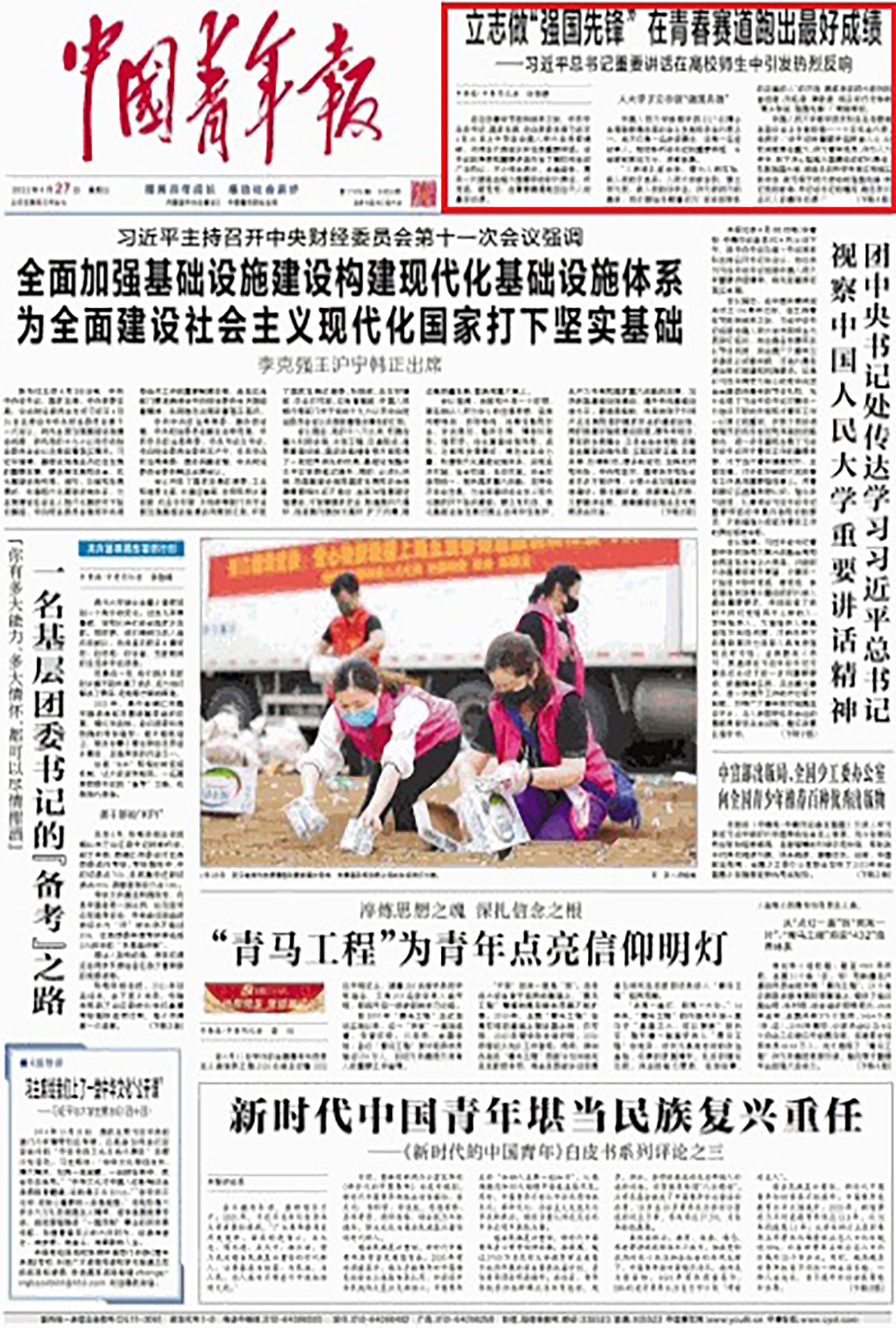 [中国青年报]立志做“强国先锋” 在青春赛道跑出最好成绩 ——习近平总书记重要讲话在高校师生中引发热烈反响