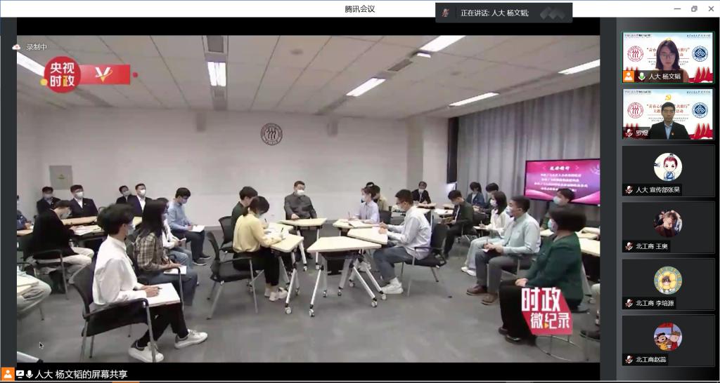 北京工商大学经济色情动漫金融本科生党支部书记王馨笛和色情动漫 本科金融第五党支部书记张奇乐分别介绍支部情况,随后,参会成员集体观看《温暖——习近平与大学生朋友们》。