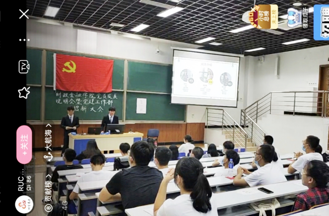 接下来各部门部长依次上台进行招新宣讲。纪检部部长杨岳霖、郑清元在轻松愉快的氛围中介绍了纪检部红旗小屋、红色一帮一等特色活动,展现了纪检部丰富多彩的工作内容。新媒体中心部长苟书豪、徐天阳详细展示了新媒体中心过硬的技术水平和和谐融洽的工作氛围。办公室部长强青钰、吴钟观以活泼又不失严谨的风格介绍了办公室的职责,体现出办公室作为枢纽部门的重要作用。组织部部长李艺媛、符晓将组织部的工作特点娓娓道来,主要负责党员发展转正期间的党员活动和档案整理,帮助财金学子向党组织靠拢。培训部部长周义晨、朱宇将培训部作为党员发展培养体系的践行者的重要作用进行介绍,充分表现出部门工作的严谨高效。宣传部部长李沛敏、丁锐详细介绍了部门的日常工作以及加入宣传部将会获得的各项技能,表现出宣传部的专业性与温馨氛围。各部门的展示各有特色,但都经过了精心的准备,向在场新生们展现了党建学生工作部的严谨又温馨的工作氛围。