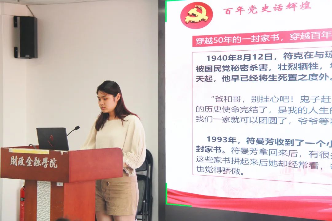 来自本科金融第三党支部的李灵妍同志讲述了自己成长路上与党结下的不解之缘,反映了当代青年人爱党爱国爱社会主义的情感追求和昂扬向上、不懈奋斗的精神风采。