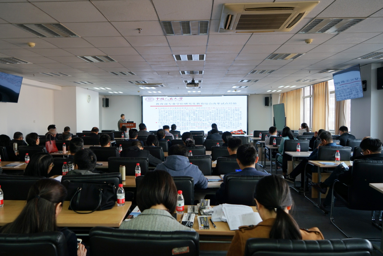 马胜利主任紧密结合教育部2010—2013年专业学位研究生教育综合试点改革项目主要成果和经验,为教职工介绍学校近年来的改革成果及该领域的前沿思想。马主任指出,专业学位研究生教育改革必须深入贯彻落实“转变教育理念、创新培养模式、改革管理体制、提高培养质量”的工作要求,做到领导高度重视、改革目标明确、组织机构健全、配套设施完善、合作机制完备。专业学位研究生教育改革可以尝试先进的人才培养机制,进一步加强与国际组织、企业集团的合作,培养高层次、应用型、复合型人才。马主任介绍了近年来学校专业学位研究生教育改革成果及学校对我院专业硕士教育发展的高要求、高期待。