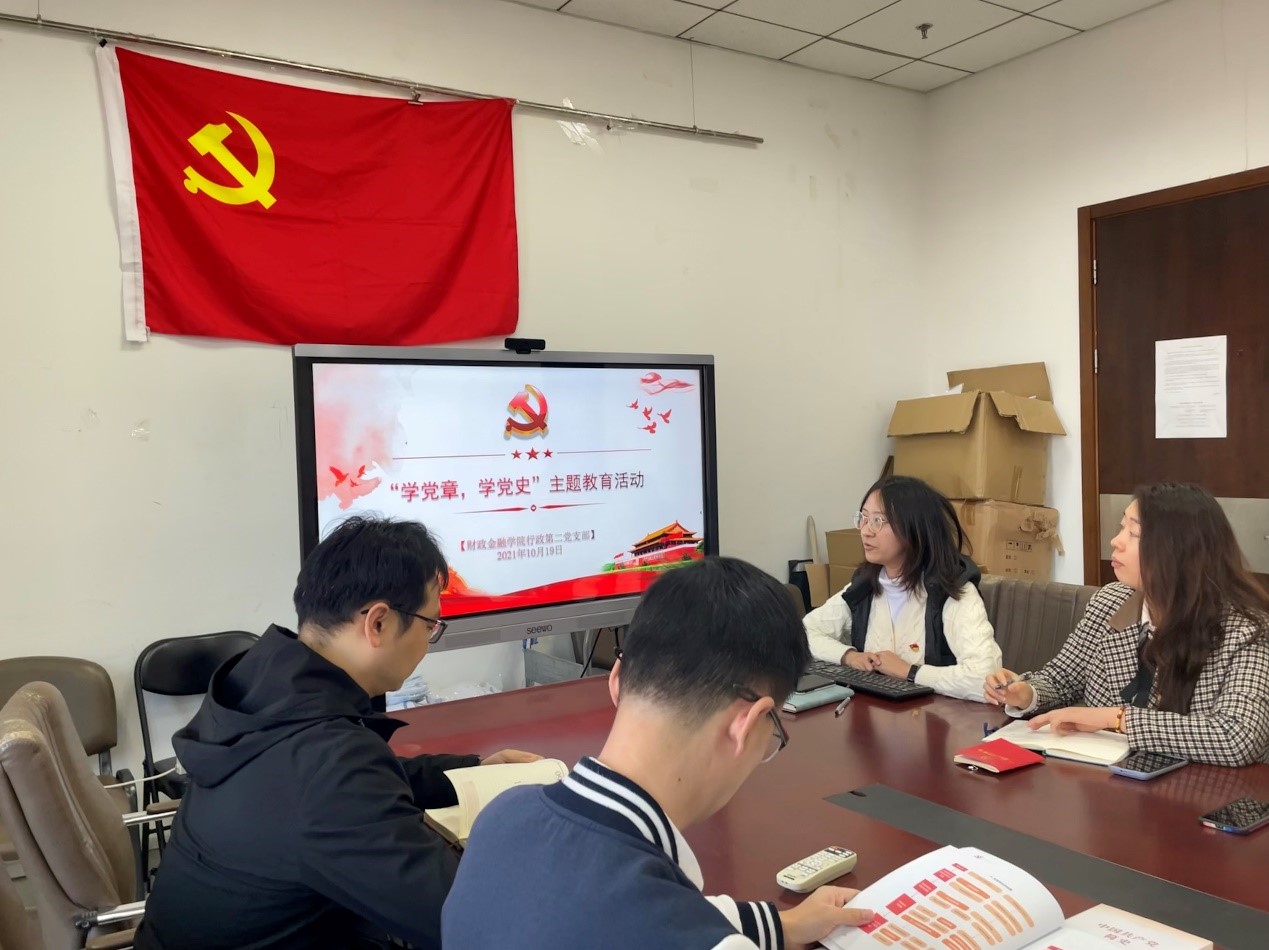 2021年10月19日,色情动漫 行政第二党支部开展“缅怀辛亥魂,纵观党章魄”主题党日活动,学习贯彻习近平总书记在纪念辛亥革命110周年大会上的重要讲话精神,回顾中国共产党建党以来的党章修订历史。本次活动由组织委员郝妙宁主持,支部全体党员参加活动。