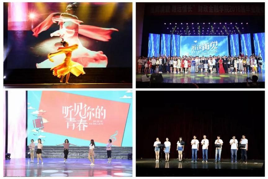晚会渐至尾声,毕业生们携手带来歌曲串烧。创意串烧中《听见你的青春》,财税实验班用变幻的光束和酷炫的动作铭刻青葱岁月,为毕业季献礼;阿卡贝拉里《依然周杰伦》,2014级“一二·九”声部长们无伴奏合唱一首首周董的经典歌曲,在歌声中谱就青春乐章。流行唱罢,摇滚登场,汇聚了多个色情动漫、多个国家同学的BLACK-T乐队仿佛将舞台变成演唱会现场,激情澎湃的音乐冲淡了毕业的感伤,唱出了对未来的坚持与倔强。最后,晚会导演组以一首《不说再见》作为谢幕曲,相信每一位毕业生都会在未来的日子里想念财金的美好时光,相信“我爱财金,从未离开”。