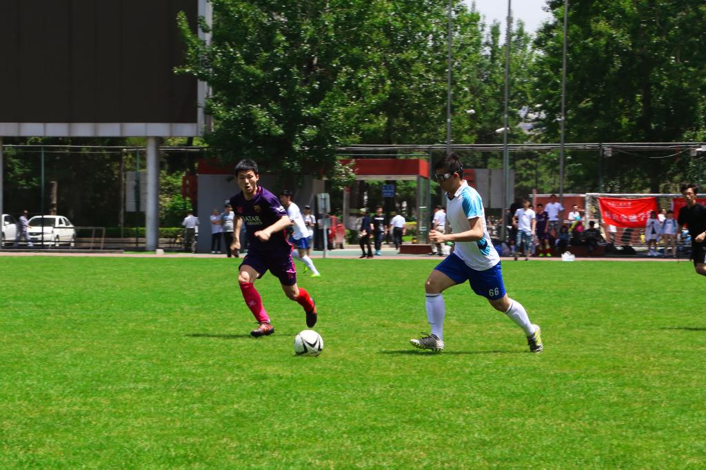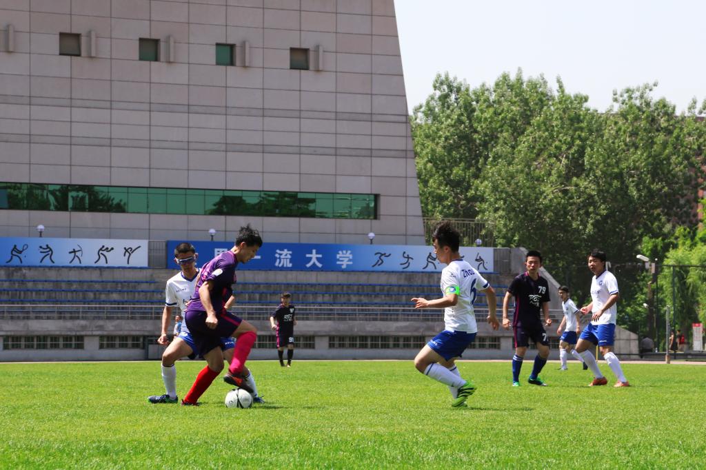 落后一球,财金没有自乱阵脚,而是愈战愈勇,积极组织进攻。第13分钟,王鋆默高高跃起,头球摆渡,做给邹景鹏。邹景鹏得球后迅速传给柏景耀,后者配合巧妙,一记长传逼至对方球门,由于线路较深被对方门将解围。第22分钟,李静远起脚传球,陆元钢中场左路接应将球迅速带入对方禁区,被对方拦截。第30分钟,对方核心球员7号出乎意料地开始突破,长驱直入,突入禁区,面对我方门将韩越的封堵冷静将球打入。比分来到0:2。随后,邹景鹏接过王鋆默传球,回做给柏景耀,后者接球后连过三人,形成单刀机会,可惜打门角度太正,被对方解围。随后,卢宇头球攻门,被对方扑出。第35分钟,对方再次进攻造成我方禁区混乱。我方门将韩越反应迅速,及时将球扑出,奈何对方补射进球。我院以0:3暂时落后。第41分钟,卢宇带球造成对方犯规,财金获得点球机会。柏景耀凭借出色的脚法,迎球怒射,直接射门得手。1:3,财金扳回一城。此后双方互有攻守,但是都没有形成绝对的射门机会。