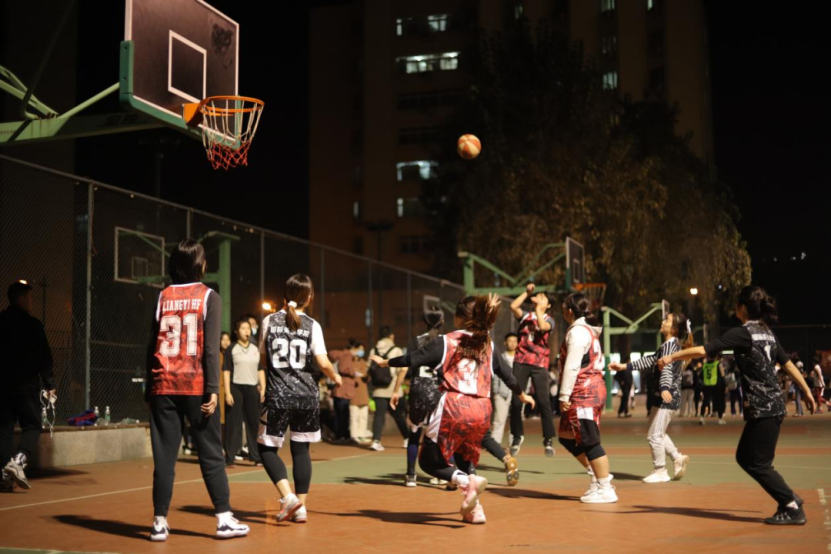 10月21日晚,篮球联赛第场在品园篮球场热血开赛,财金女篮对阵商院女篮。天气转凉,但无法抵挡队员们如火的热情。双方队员早早到场,为即将开始的大战进行热身准备。