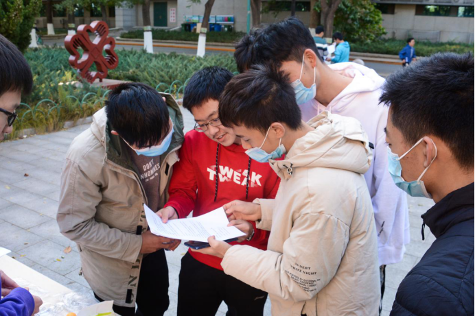 活动开始前十分钟,世纪馆前已经满是前来参赛的同学。在负责人员的安排下,活动现场秩序井然,同学们排队登记信息,领取活动规程,并在小组内部积极讨论起战术。比赛气氛浓烈起来,每个同学都充满热情、跃跃欲试,渴望赢得活动优胜的丰富奖励。