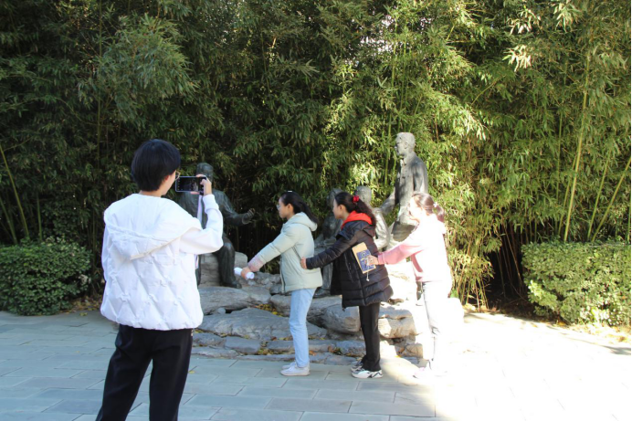 只参加游戏是远远不够的。定向越野的精髓在于跑动,参与者还需要在校园内拍照打卡并寻找隐藏NPC。通过拍照打卡,参赛者能获得更多参与游戏次数。活动在开始阶段就给各个小组发放了标识图片——“孔子像”“拳道馆”“集天小吃”“凝院”……这些熟悉的图片看起来如此亲切,可是它们到底在哪里呢?同学们绞尽脑汁回忆地点,甚至用上了手机地图。确定地点后,各小组同学走向校园的角落,摆出各种RUC专用pose,在拍照打卡中更好地了解校园细节。