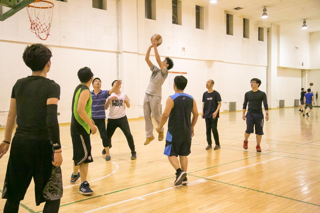 5月10日晚上六点半,我院嘉年华师生篮球交流赛在世纪馆B208准时开始。我院党委副书记黄文彬、类承曜,保险系张俊岩,财政系雷敬华,行政老师贺松霖、冯建彪、齐飞、韩晓冬八名教师与我院八名学生参加了此次师生篮球交流赛。本次比赛分为两个环节。在第一环节中,16位球员分成A、B两组打半场。在第二环节中,16位球员齐上阵,痛快淋漓地打了一场全场篮球赛。