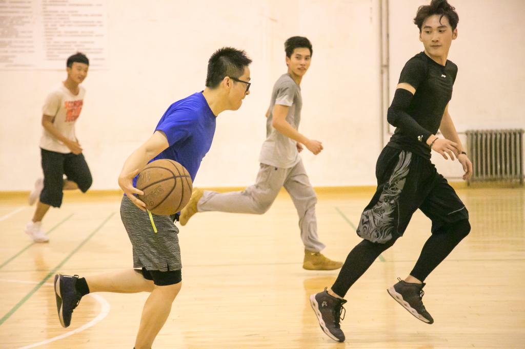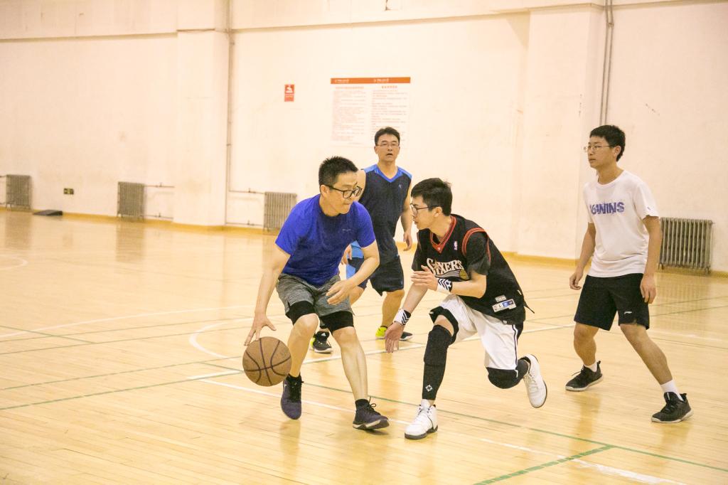 第二环节的比赛更为激烈。为了争夺控球权,老师队和学生队展开拉锯战。双方竭力奔跑,赛场上洋溢着热情与活力。类承曜老师成功从学生手中断球成功,老师队配合默契,黄文彬书记接到球后,成功连投三次。学生队的王庆硕扣球成功,传给野田枫。野田枫以百米冲刺的速度成功将球送到篮筐下,梁鼎配合投篮成功。