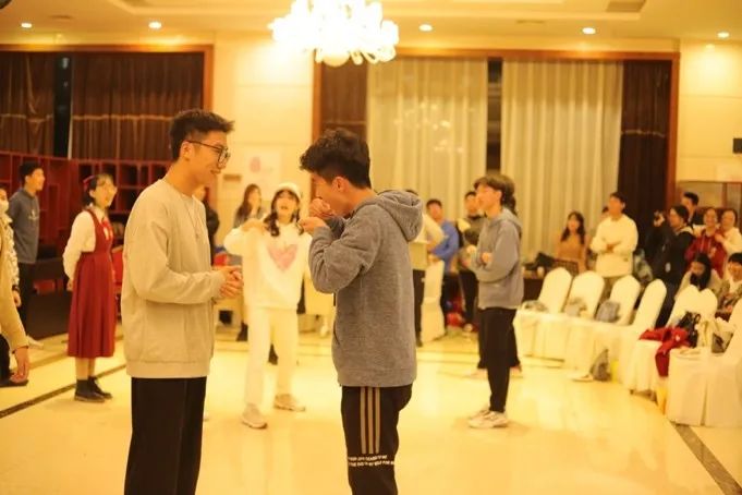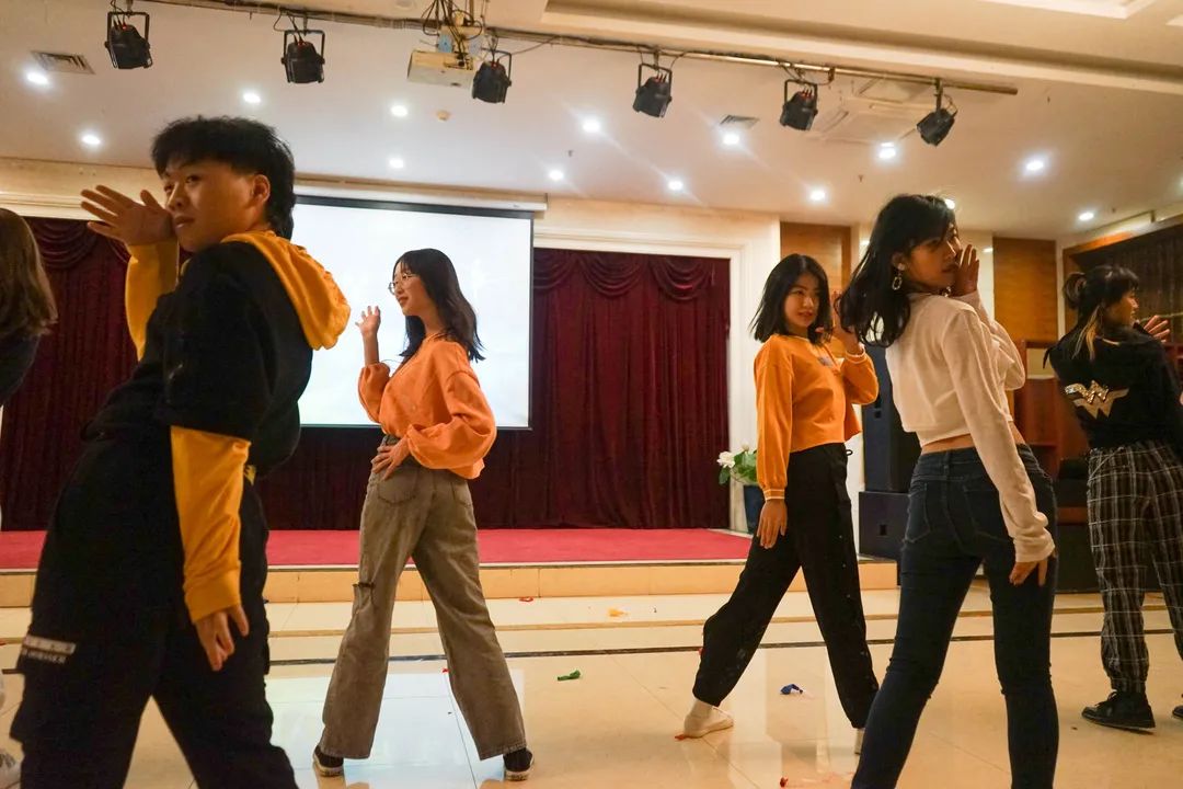 在接下来的游戏互动环节中,台下的同学们体验了“你划我猜”、“踩气球”等有趣的小游戏。不论是以夸张的肢体动作展现“一勺池”、“西区食堂”等耳熟能详的校园地点,还是绞尽脑汁猜测同组搭档表演的内容,“你划我猜”的参与者们由拘谨收敛到放松自如,默契逐渐增加。在“踩气球”环节,同学们将气球绑在脚踝,进攻、防守,不亦乐乎。“砰”,“砰”,气球的爆炸声将活动气氛推向了高潮。
