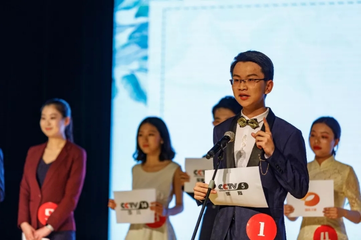 随后进入到“声声精彩”环节中,每位选手结合自己随机抽取的电视频道,针对三月二十八日北京的扬沙天气现象进行主持,而评委们则化身手持遥控器的电视观众,掌握随时换台的权利。我院曹洋铭同学担纲体育频道“天下足球”的主持人,当评委老师转台到体育频道时,他从容不迫地播报了扬尘天气对足球运动员训练和足球赛事的影响,他出色的应变能力和稳健的台风使他在这一环节中顺利晋级!