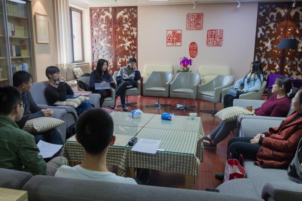 主持人郑舒鹏以最近的反常天气切入,点出人们所期待的“扎根于大地的情怀,皇天后土下三才合一的境界”,再回溯我国城市化率惊人的历史变化,收束于主题——中国乡土关系即人们与乡土之间的关系。而后,在主持人向江伟的引导下,同学们描述了在自己见解下传统乡土社会所呈现出的图景:在空间上,人们居于相对固定而孤立的社群中,人际关系相对稳定,人们相互之间熟悉,这样就维持了“熟悉”;在时间上,社会生活内容与方式相对稳定,这样就维持了“传统”。同学们又以切身的经历为例更加具体地阐述了这种关系:杨钧雄用外来人难以融入原住民来说明人际关系的不流动;黄鹏以文字下乡的困难补充了杨钧雄的观点;同学们又提到了中国人对土地的依赖以及老一辈“落叶归根”的丧葬制度。之后,向江伟提到乡土文化的产物——方言,希望每个人说一句家乡话来更深地理解乡土文化中的差异。在同学们各自的方言声中,讨论渐入佳境。