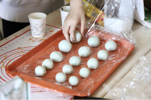 面团和好,就进入大家喜闻乐见的整活包青团阶段啦!