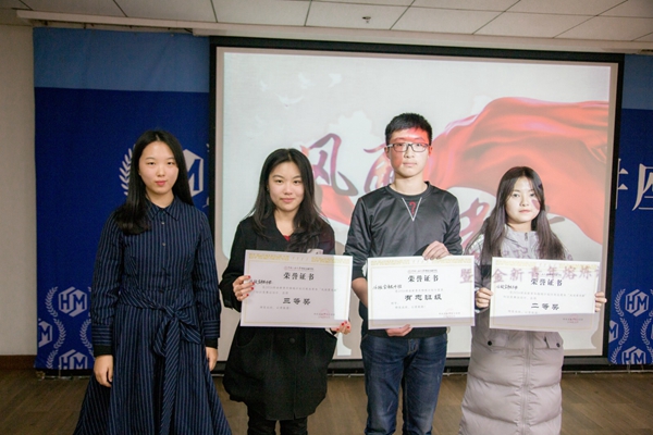 在知识竞赛的各环节之间,财金新青年熔炼计划各项比赛的获奖者进行了优秀作品的展示。定向越野比赛、真人飞行棋大赛、“rolling colors”纸筒设计大赛、宿舍门牌设计大赛等赛事的获奖代表陆续上台发言,分享了自己创作时的心路历程,让在场的所有人感受到了财金学子的无限创意。