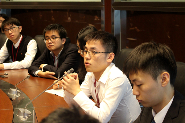 此次香港之行,我们参观了香港证券交易所、金融管理局等金融机构,也参观了香港立法会和香港中文大学。在整个参观访问过程中,双方就人民币国际化、互联网金融的兴起、以及银行合规等问题进行了深入讨论。在这几次讨论交流中,有几点给我留下了深刻的印象。第一点是香港金融环境的自由开放。比如在香港证券交易所,工作人员向我们解释了香港“披露为本”的机制,投资活动要求投资者自己考虑,对投资者要求比较高;在香港金融管理局也提到了“市场自发机制”;第二点则是在参观立法会时,我注意到有很多为小朋友普及法律知识、普及选举权的活动,这种“从娃娃抓起”的行为让我很受触动;第三是在参观香港中文大学时,我注意到该校的学生英文水平很高,有国际视野,他们在一个很开放、自由、融合的环境中学习成长,这一点值得大陆各高校借鉴。——2013级金融数学实验班刘昊凝