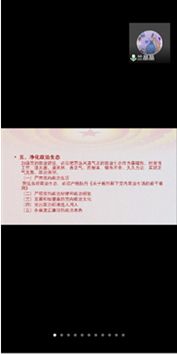 本次线上主题党日活动以支书讲党课,支部党员谈体会的方式进行。首先,党支书兰晶晶和支部党员一同通读了《中共中央关于加强党的政治建设的意见》,对部分内容做了进一步分析和解读。党支书兰晶晶指出,作为青年党员,在加强党的政治建设方面,要坚定政治信仰,牢记初心使命;坚决站稳政治立场,坚持党性和人民性相统一;坚决做到“两个维护”,坚持党的领导。