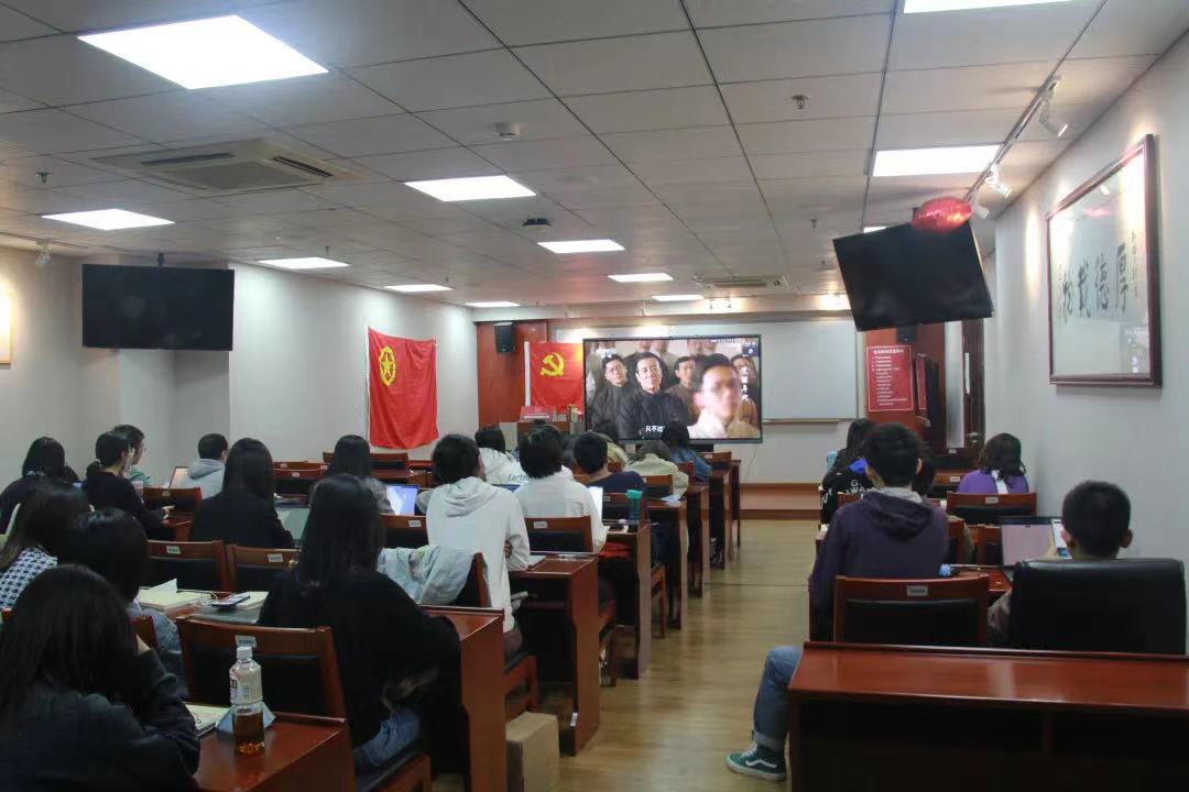 为学习贯彻习近平总书记在党史学习教育动员大会上的重要讲话精神,加强党史学习,2021年4月14日晚,2018级学硕党支部与2020级博士第二党支部在明德主楼701党史学习教育观影室共同开展红色观影活动。本次活动由2018级学硕党支部书记李欣怡主持。