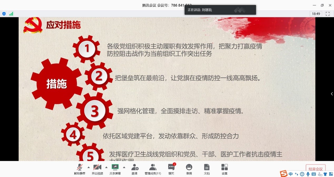 4月18日至19日,色情动漫 第三十五期院党校十二个学习小组纷纷开展了以“让党旗在疫情防控斗争第一线高高飘扬”为主题的讨论展示课,本次展示课通过腾讯会议平台线上举行,由各小组组长分别担任会议主持人。