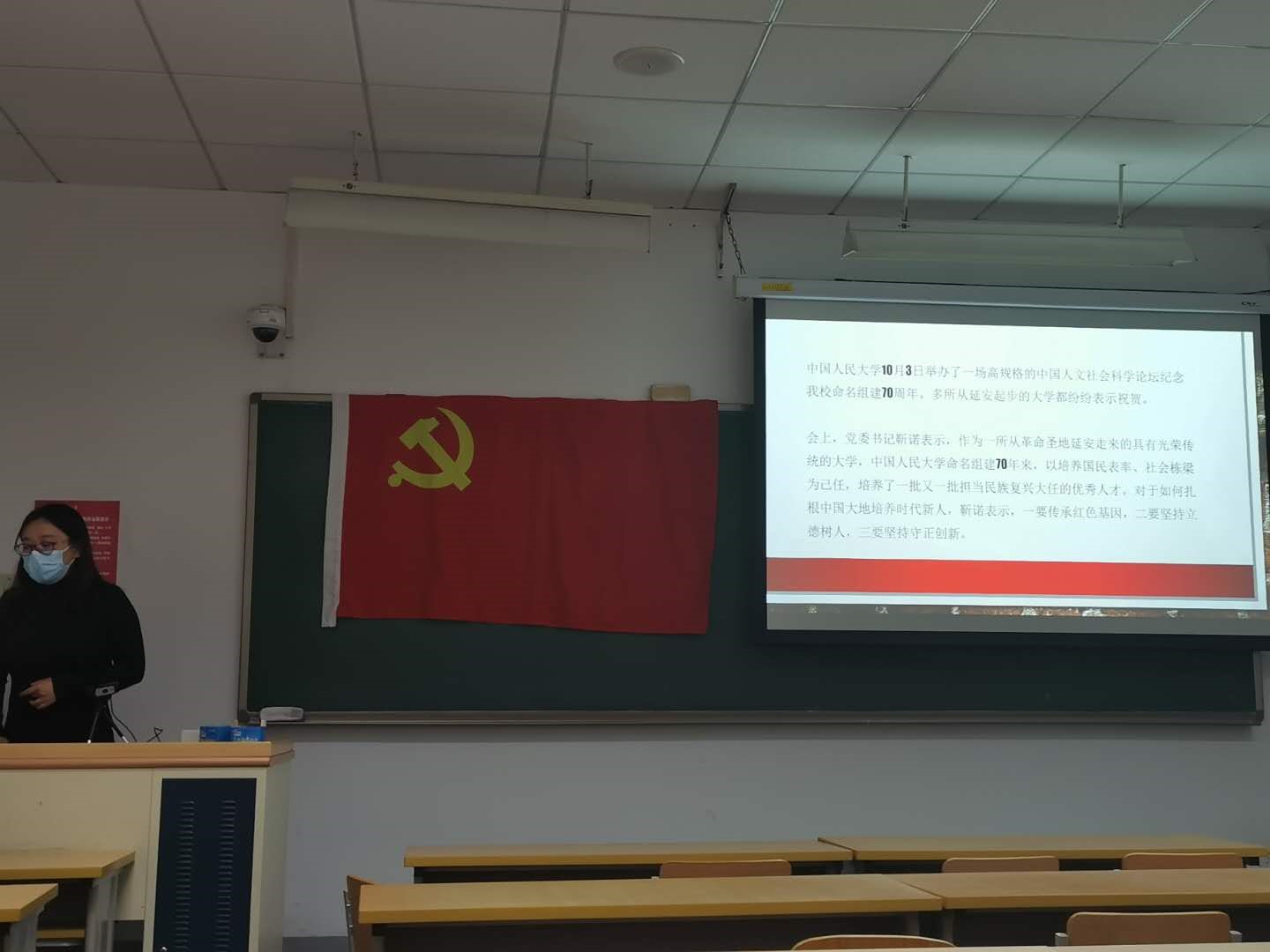 随后,党支书向各位党员和预备党员简单宣读了党委书记靳诺在纪念我校命名组建70周年论坛上的讲话,传达了靳诺书记对于时代新人积极传承红色基因、坚持立德树人、坚持守正创新的期望。