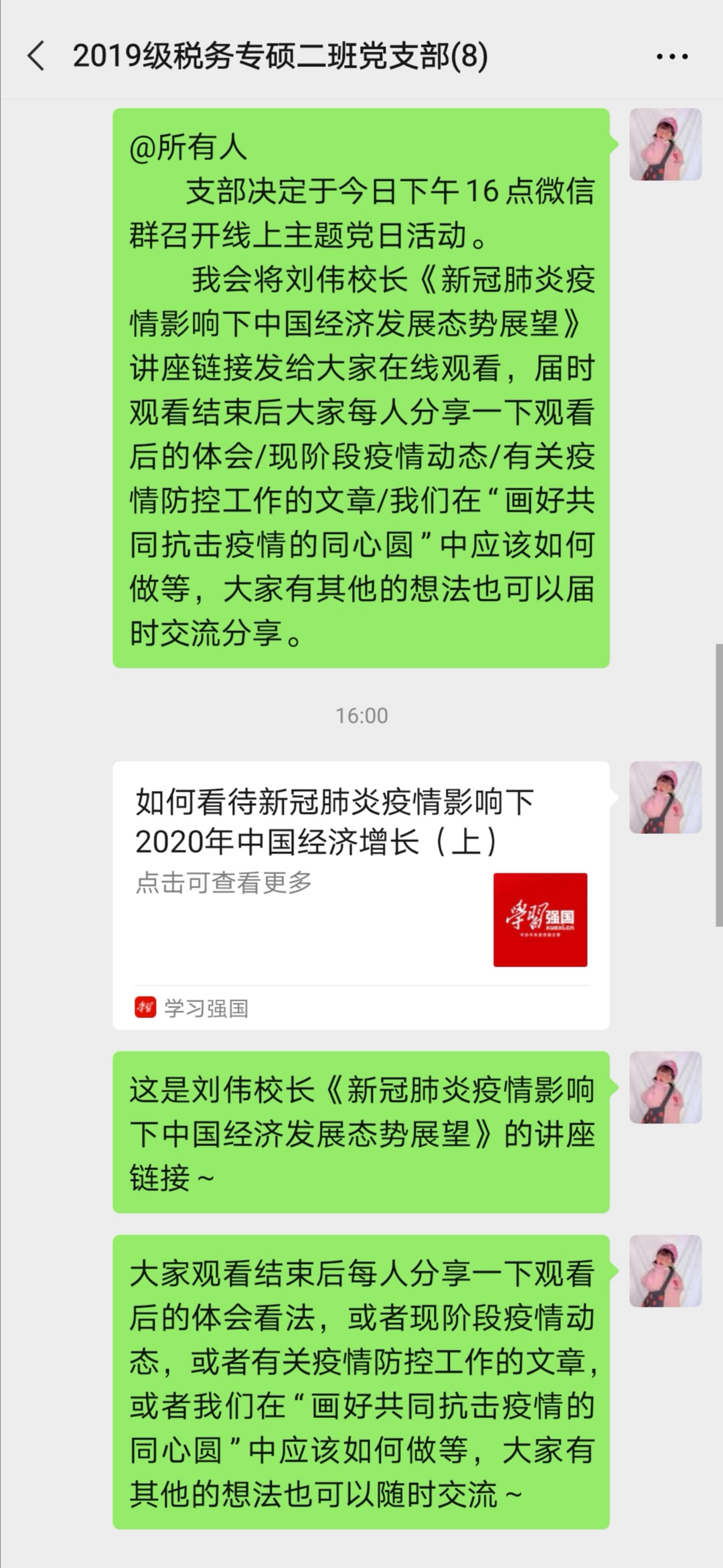 线上主题党日|2019级税务专硕二班党支部共同学习防疫公开课,积极分享学习感悟