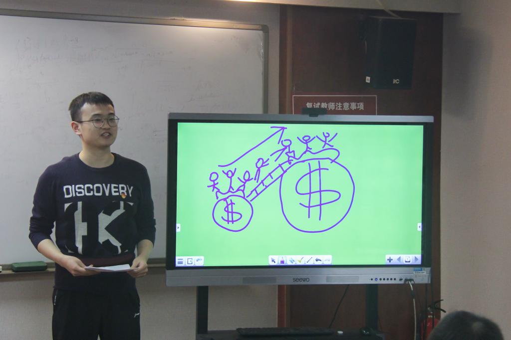 王与珺介绍本科金融第三党支部本学期党史学习教育工作开展情况。她介绍了本学期支部已开展的四次主题党日活动的主要内容,并表示,本科金融第三党支部坚持贯彻“三会一课”等基本组织生活制度,通过支部共建、观影研讨等方式创新组织生活形式提升主题党日活动实效,让组织生活更有活力和吸引力。