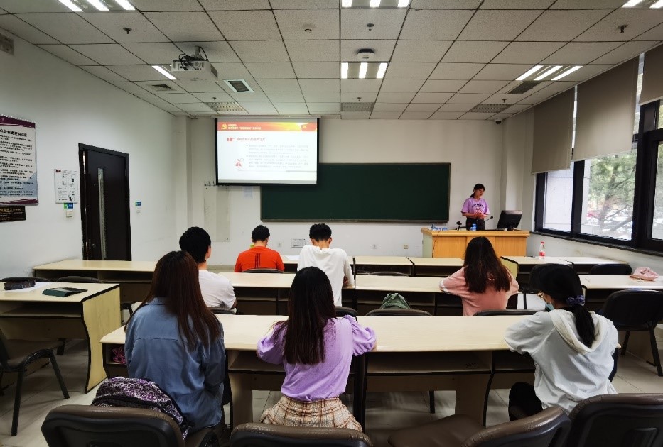 为深入学习贯彻习近平新时代中国特色社会主义思想,认真学习基层党组织建设相关规章制度,以学促建,提升支部建设规范化、标准化水平,2021年5月13日,汉青研究院2020级汉青学硕党支部在明德新闻楼0101教室召开“以学促建 持续提升支部建设质量”主题党日活动,学习党内相关规章制度。本次会议由支部书记王亚昕主持。