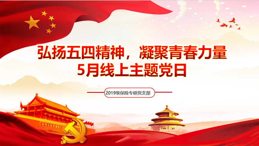 5月13日晚8点,2019级保险专硕党支部顺利开展“弘扬五四精神、凝聚青春力量”5月线上主题党日活动。本次会议由党支部书记李梦菡同志主持,全体党员和积极分子参会。