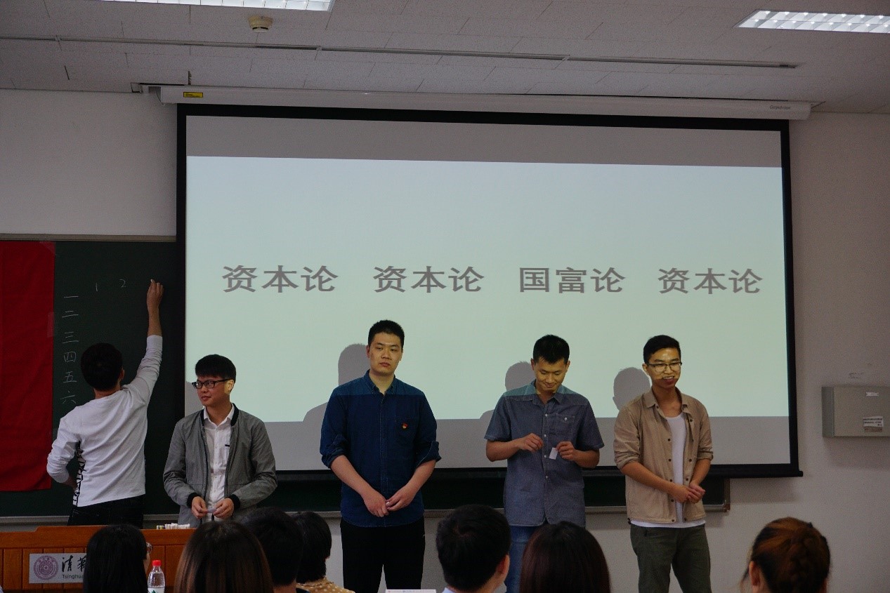 紧接着进入欢快轻松的教学游戏。第一个环节是“谁是卧底”,每轮游戏有来自不同组别的四名同学参加,有一人拿到与其他三人不同的“卧底词”。游戏要求四名同学依次用1-2句话描述自己抽到的词。这些词语都和经济金融、时政热点息息相关,比如资本论和国富论,ofo和摩拜,支付宝和余额宝,央行和美联储等。每轮描述结束后,场上同学进行投票选出自己认为是“卧底”的同学,两轮投票内卧底同学被投出则其他非卧底同学获胜。这一环节在很大程度上考验了同学们在经济金融方面的理论功底和对当下时政的关注程度。伴随着一阵阵欢笑,同学们也相互学习,获益良多。