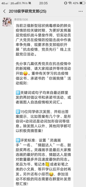 线上主题党日|2018级学硕党支部“你画我猜”,防疫知识入脑入心入行
