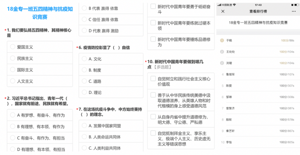 线上主题党日 | 2018级金融专硕一班党支部举办线上知识竞赛,重温五四精神