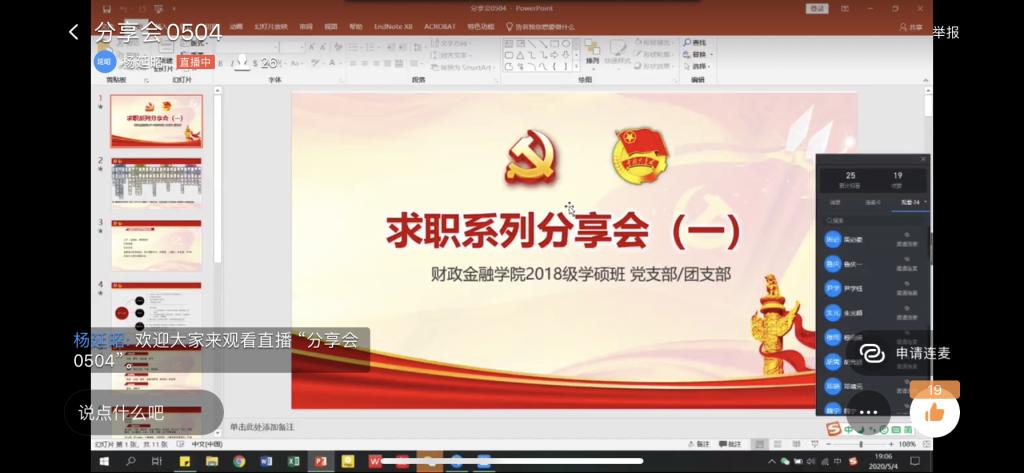 线上主题党日 | 2018级学硕党支部学习讲话精神,结合就业开展线上分享会