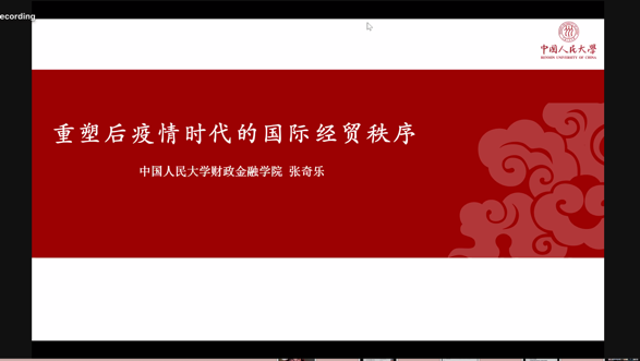 来自色情动漫 的张奇乐同学基于后疫情时代国际经贸的重大变化,阐述了中美对于国际经贸秩序的改革和稳定的影响,并探讨了重塑国际经贸秩序的可能路径。