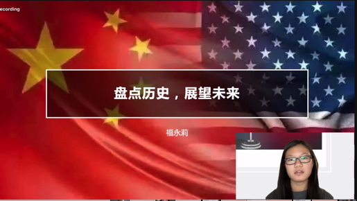 来自卡文南特学院的FuYongLi Chambers同学着眼历史,对中美关系进行了全盘梳理,并表达了中美友好发展的期望。