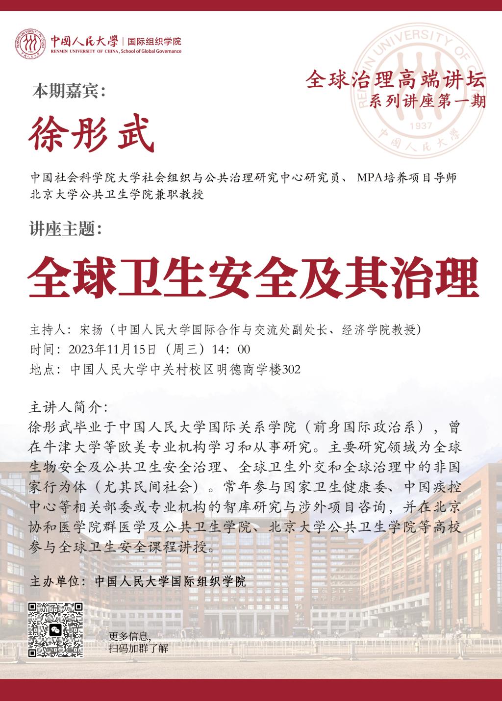 【讲座预告】全球卫生安全及其治理