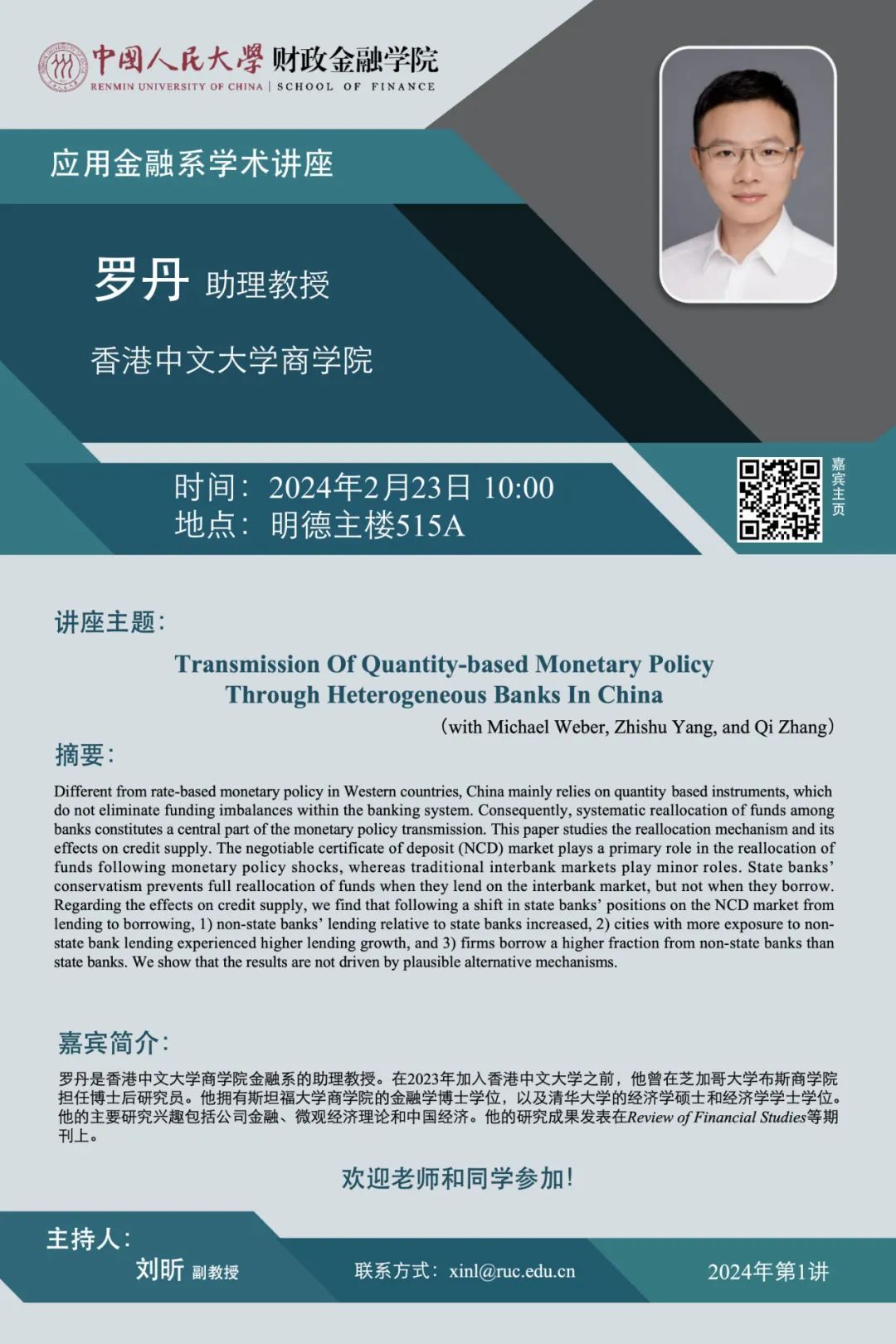 讲座预告 | 应用金融系学术讲座:香港中文大学商学院罗丹助理教授