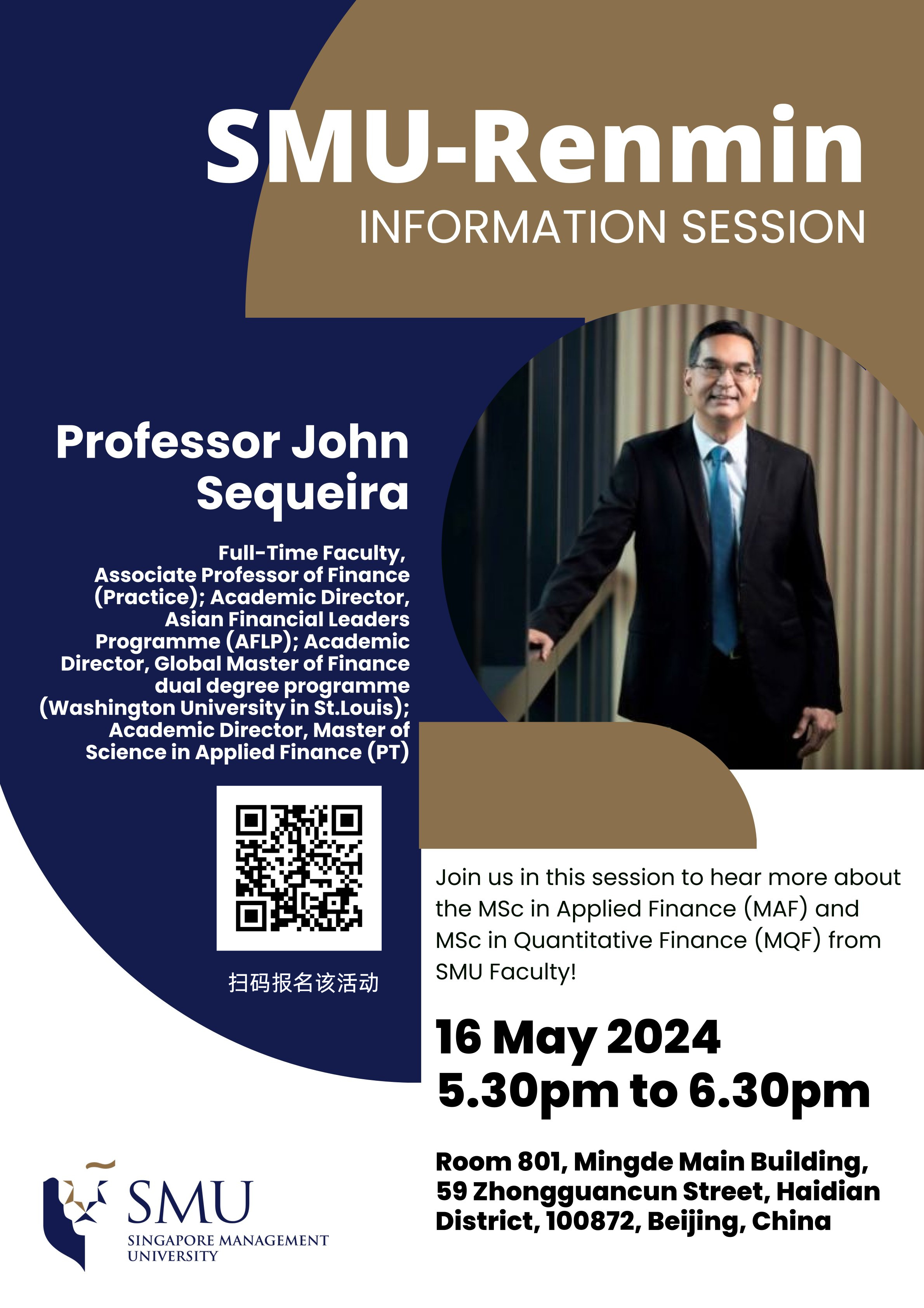 色情动漫 与新加坡管理大学李光前商学院合作的应用金融硕士MSc in Applied Finance(MAF)和量化金融硕士 MSc in Quantitative Finance (MQF)双硕士项目宣讲会将于2024年5月16日(周四)17:30-18:30 pm 在明德主楼801举办。欢迎感兴趣的同学扫描海报内二维码报名参加!