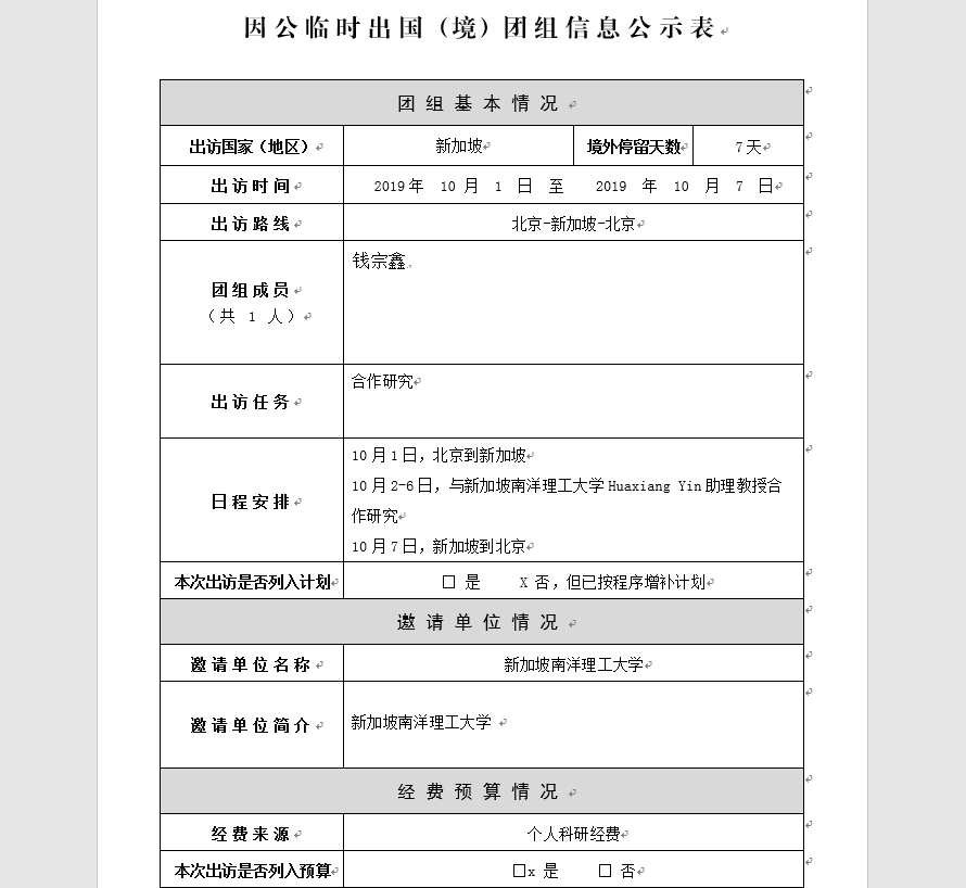 根据学校有关规定,现将钱宗鑫副书记因公出国的事项进行公示,详见下表。