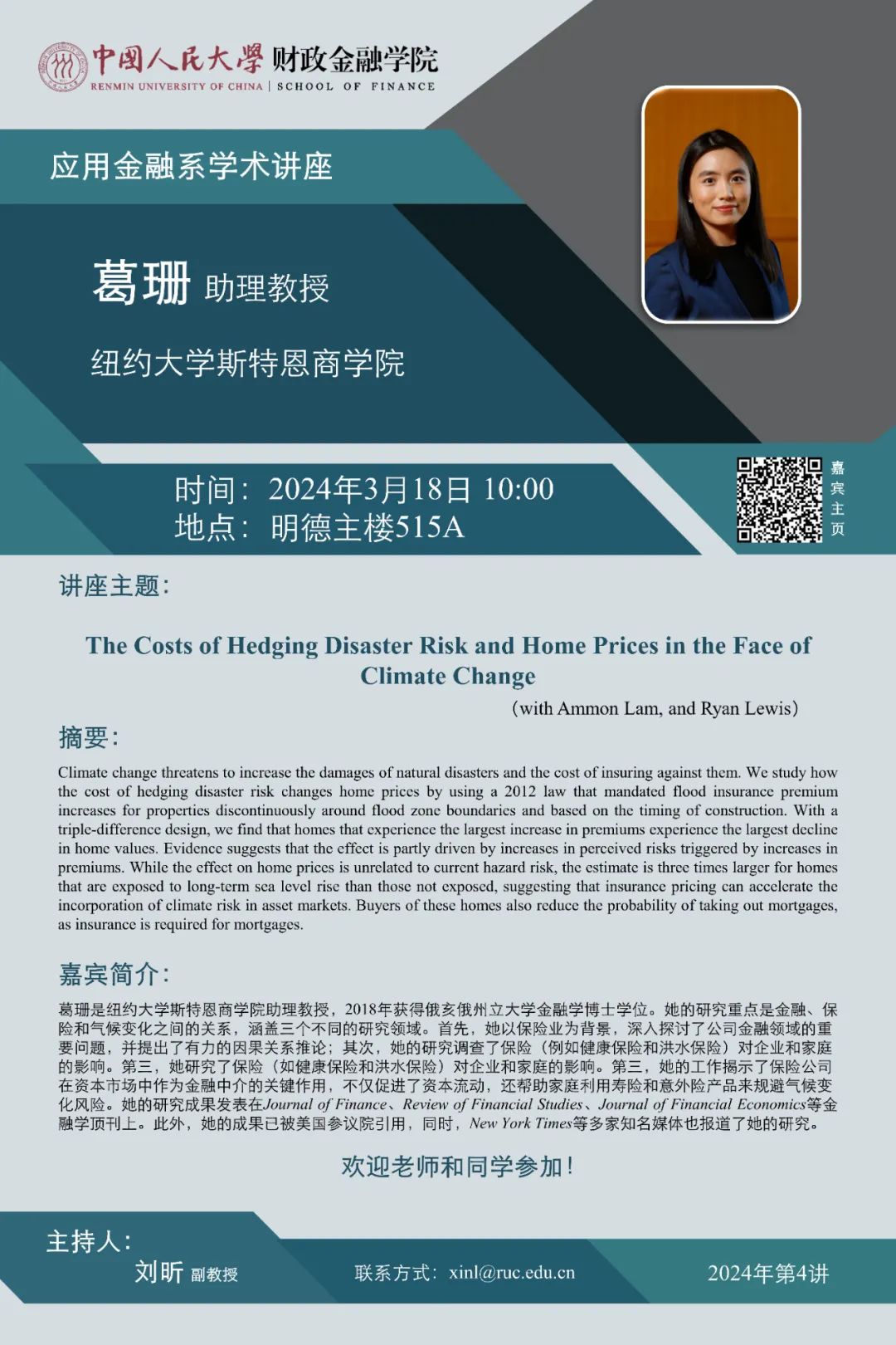 讲座预告 | 应用金融系学术讲座:纽约大学斯特恩商学院葛珊助理教授