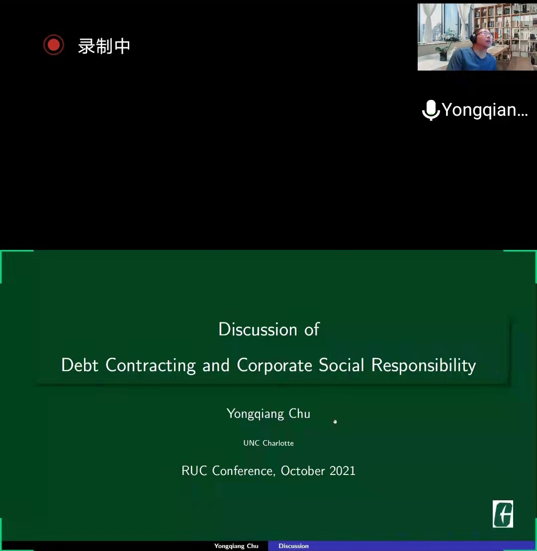 邹昆儒博士分享论文——“Debt Contracting and Corporate Social Responsibility: The Role of Bank Loan Covenants”,通过探讨贷款契约对借款公司企业社会责任(CSR)绩效的影响来研究债务契约的真实和社会影响,论文记录了具有更高契约强度(即更严格的契约)的公司的CSR绩效较差。内生性测试包括基于贷款契约的供应方决定因素的工具变量方法和分别基于SFAS160和反重新定性法规的两个准自然实验,支持从契约强度到企业社会责任的因果关系。褚永强教授针对论文实证和机制进行了详细点评。