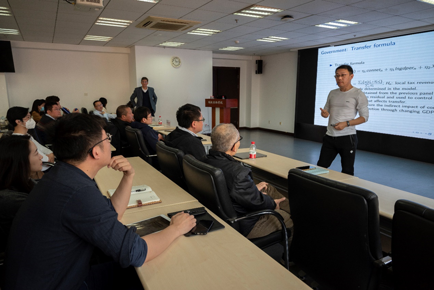 讲座正式开始之前,贾俊雪教授向与会师生介绍了陆毅教授。陆毅教授是清华大学经济管理学院经济系系主任,中信讲席教授,国家级人才计划获得者,2019年荣获首届中国青年经济学家奖。陆毅教授从事中国经济领域的研究工作,主要集中在经济增长、公共财政、国际贸易和区域经济等方向。在American Economic Journal: Applied Economics, American Economic Journal: Economic Policy,Review of Economics and Statistics, Journal of International Economics, Journal of Labor Economics, Journal of Public Economics,Journal of Development Economics等国际一流经济学杂志发表论文数十篇,在《中国社会科学》、《经济研究》、《管理世界》等国内一流经济学杂志发表论文十余篇。目前担任American Economic Journal: Economic Policy编委会,China & World Economy和《经济学报》的副主编;中国金融40人论坛成员,浦山奖学术委员会委员;清华大学-芝加哥大学经济与金融联合研究中心联合主任,清华大学中国经济社会数据研究中心主任,国家统计局-清华大学数据开发中心主任,清华大学经济管理学院国际经济研究中心主任,清华大学中国财政税收研究所副所长,清华大学国有资产管理研究院副院长。