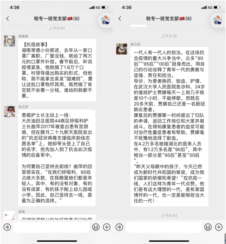 疫情防控是一场没有硝烟的战斗,在当前防控新冠疫情的严峻斗争中,成千上万名党员投身抗疫一线,广大医务工作者舍身忘我地工作,为打赢疫情防控这场硬仗作出了突出贡献。疫情时期,学院师生党员通过分享抗疫英雄事迹与自身抗疫经历,抒发感悟,向优秀党员同志看齐,坚定打赢疫情防控阻击战的信心。