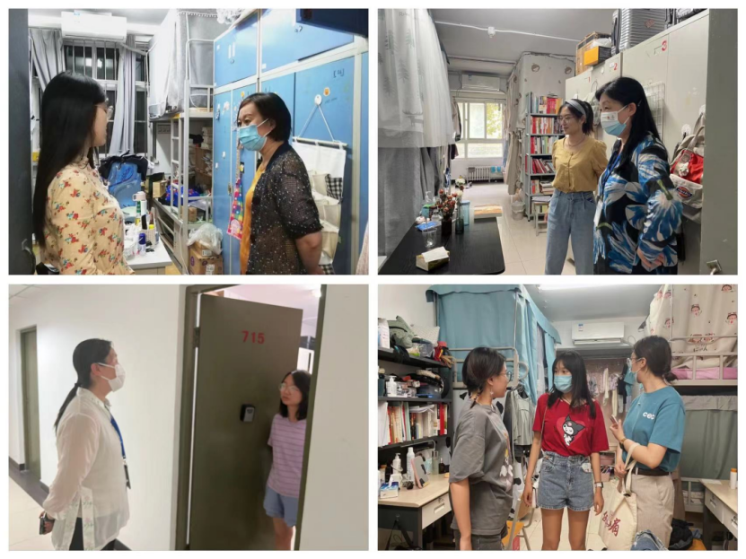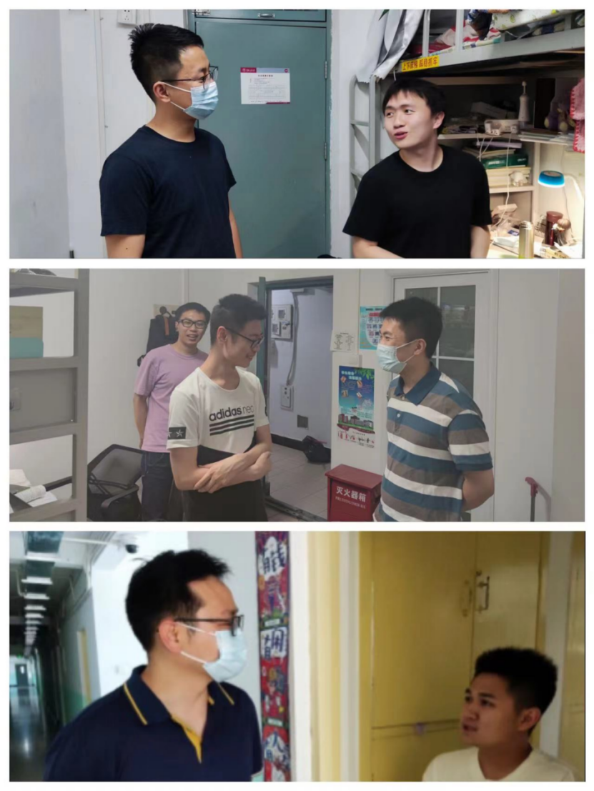 我院学生宿舍分布于知行、品园、东风、红楼、立德公寓、青年公寓等,点位分散,体量庞大。针对于此,学院在校领导、老师和专职辅导员逐一走访校内16栋宿舍楼,覆盖了全院各年级学生宿舍,看望在校学生,与同学们近距离交流。